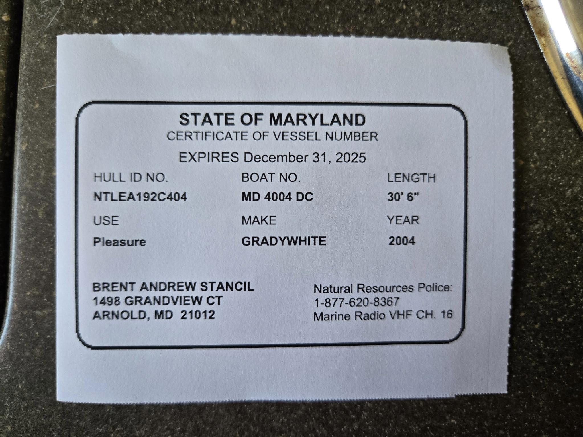 Boat Registration Card