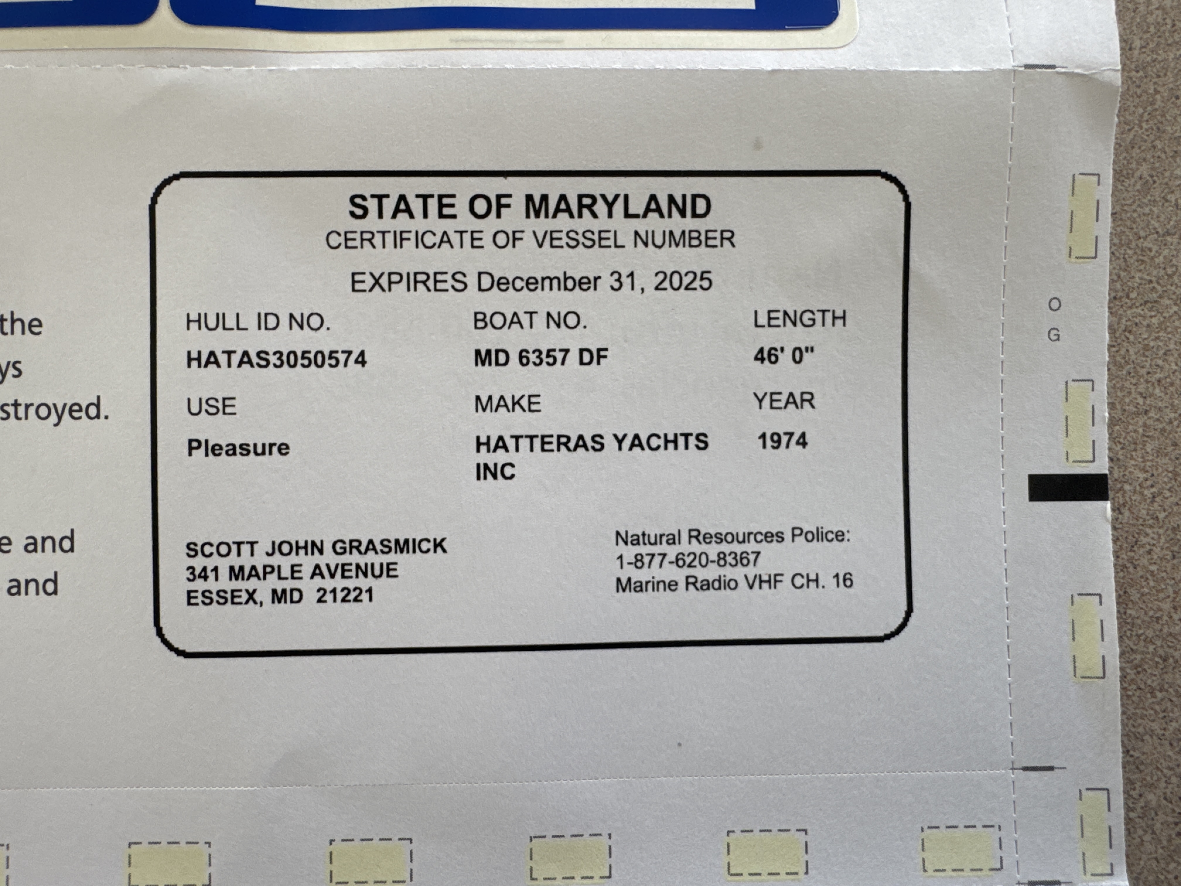 Boat Registration Card