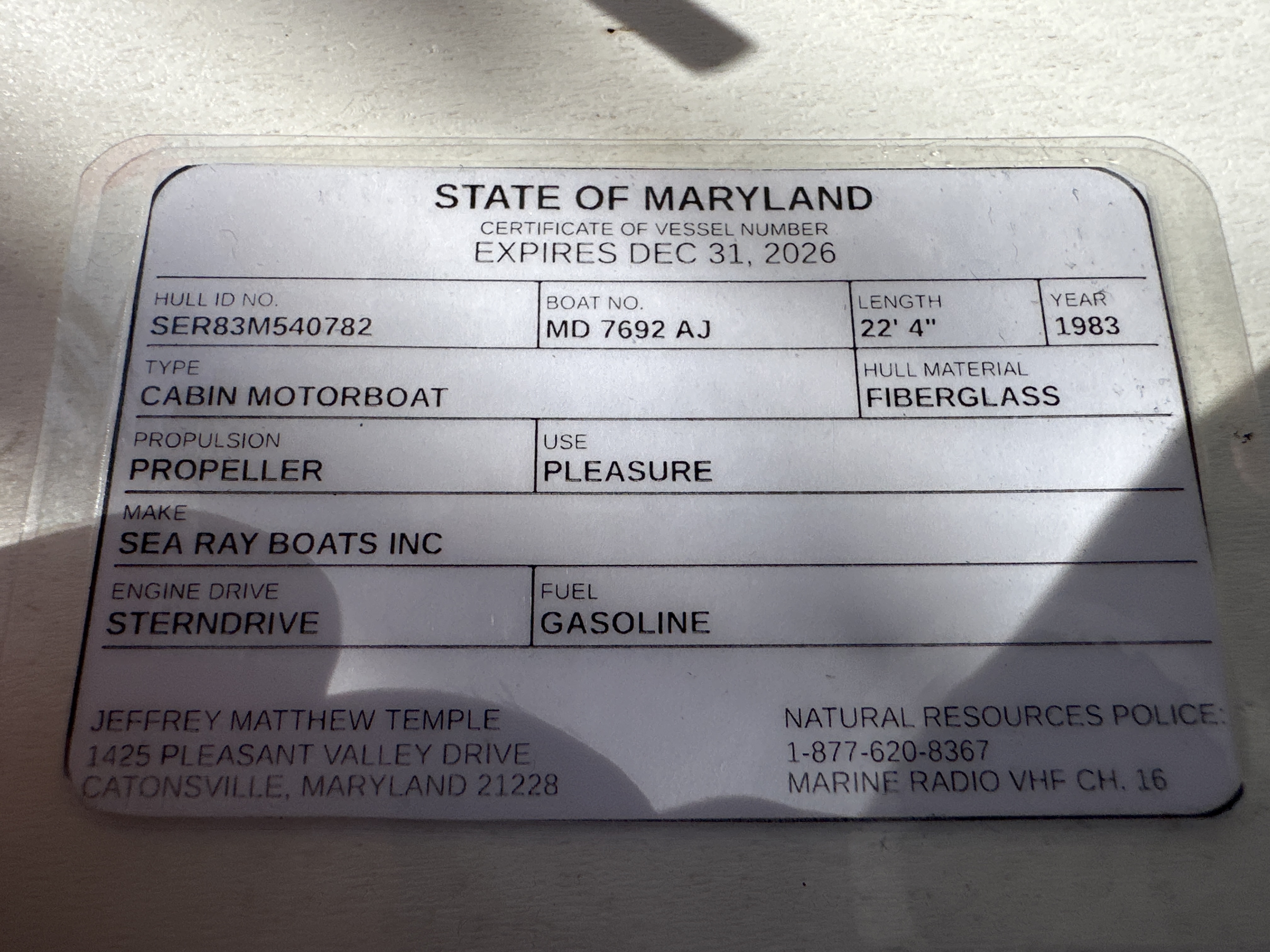 Boat Registration Card