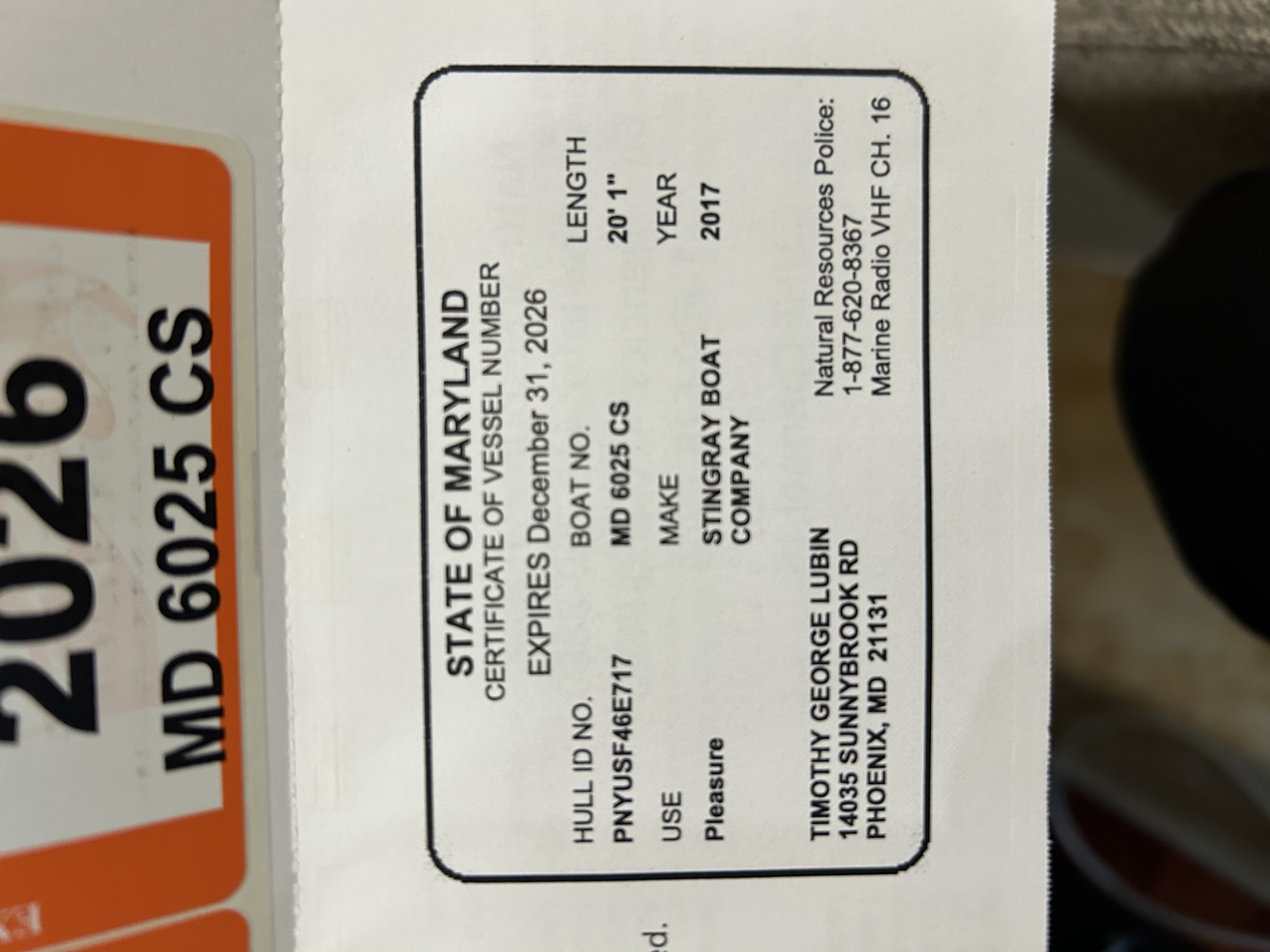 Boat Registration Card