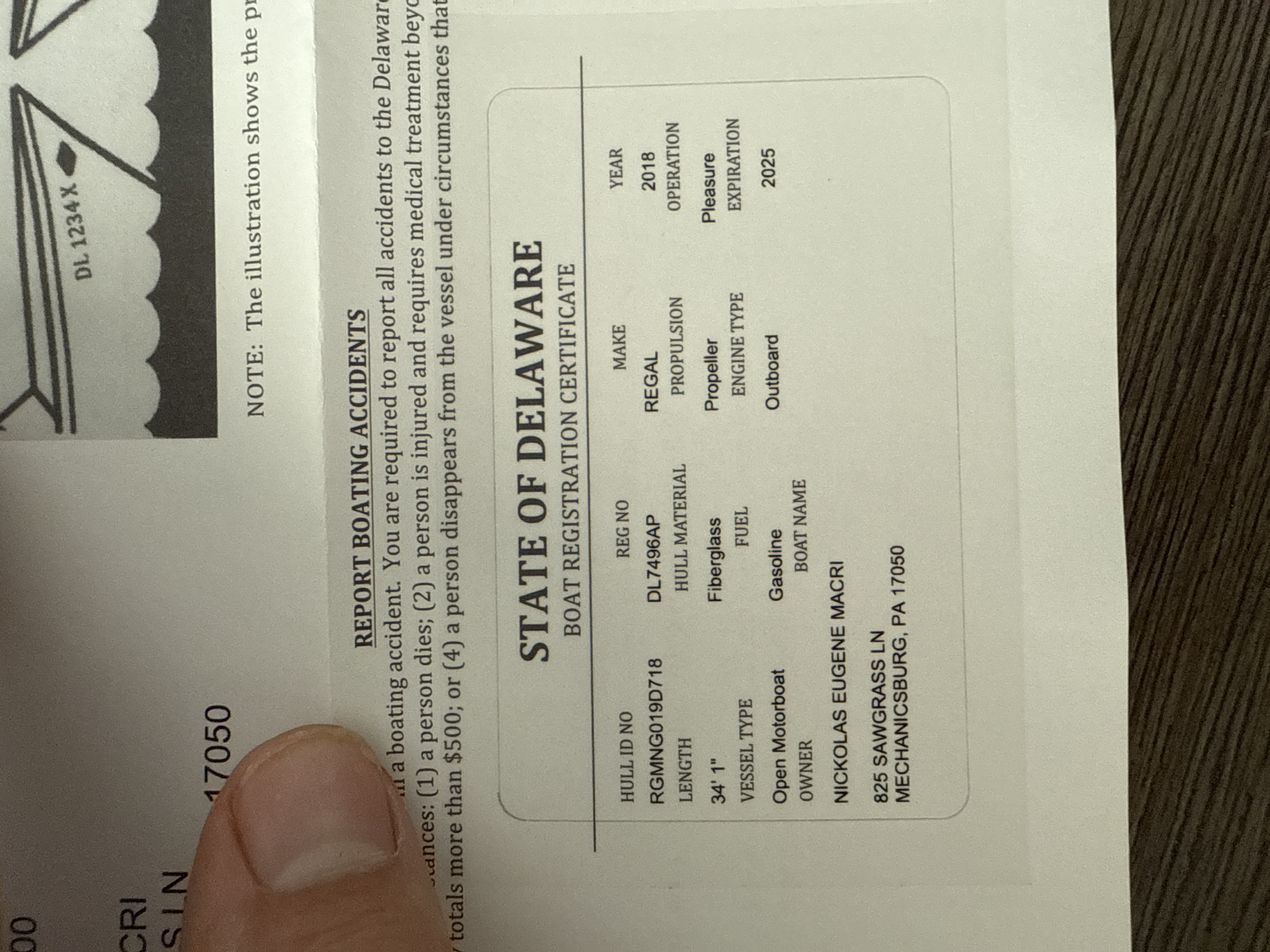 Boat Registration Card