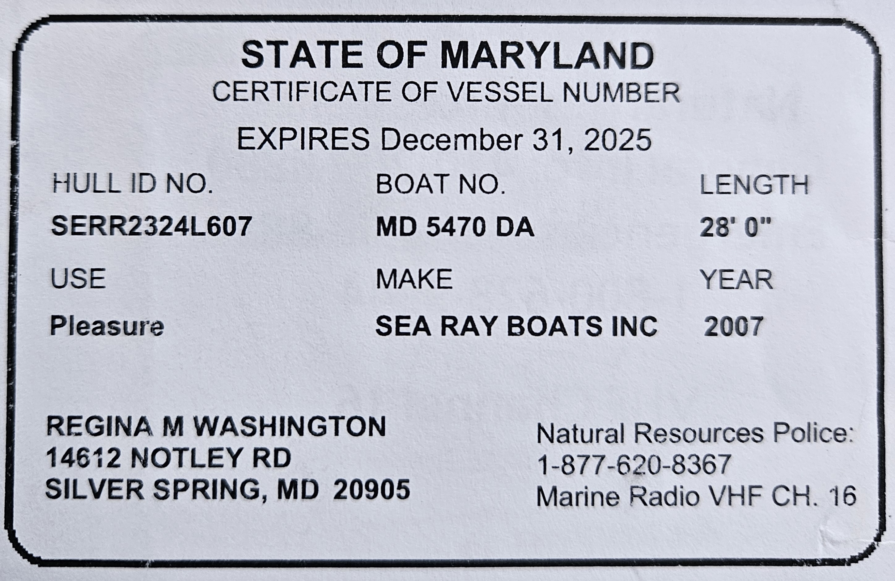 Boat Registration Card